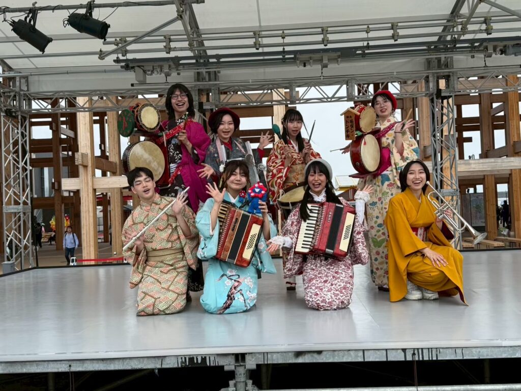 全国唯一、派手な衣装とメイクに身を包み、昭和歌謡を中心に様々な音楽を演奏する一風変わった大学生によるちんどん屋サークル。毎年富山で行われる全国チンドンコンクールにも連続出場中!今回はステージ演奏に加え、長田の街も練り歩きます!!